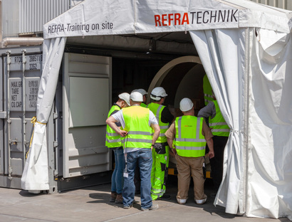 | Tag 3: | Vormittags: Theoretische Schulung zum Einbau von Feuerbetonen im Gieß- und Trockenspritzverfahren. Nachmittags: Praktische Übungen zum Einbau von Feuerbetonen im Gieß- und Trockenspritzverfahren. |