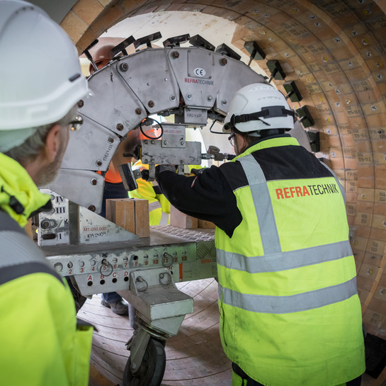 Training on refractory brick installation and the different methods applied (e.g. using the REFRA-Rig II refractory lining machine), selecting suitable linings for critical areas in rotary kilns or static units (e.g. relining of areas with deformed kiln shell in an optimum manner).